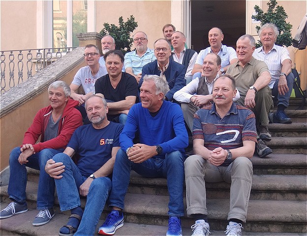Die Idee war: Wenn wir schon nicht alle in einem Agriturismo unterkommen, dann könnten wir doch wenigstens unseren letzten Abend in einem solchen verbringen. Die Herausforderung war für den Busfahrer größer als für uns! Letztlich setzte er uns dann aber an der richtigen Stelle ab! Hier gab's auch ein paar Rückblicke in unsere Klassen-Vergangenheit: Wandertag der 10a, Bundesjugendspiele 1974. Mann, ist das schon lange her! Dank "Hubi" aber bestens dokumentiert. Sogar von unserem 20-jährigen Abi-Jubiläum hatte "Hubi" einen Film gedreht. |
