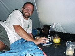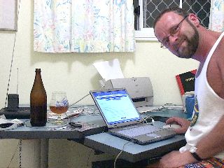 Mit Hilfe eines geduldigen Internet-Shop-Menschen ist es mir heute in Noosa gelungen, die bisher aufgelaufenen - immerhin fast 1000 (!) Fotos auf CD zu brennen und anschliessend nach Hause zu schicken. "Der soll sich mal nicht so haben, eine CD brennen ist doch nix Besonderes", wird jetzt mancher von euch denken: Ist es auch nicht, daheim schon gleich gar nicht. Aber unterwegs schaut's anders aus: Die 315 MB mussten erst mal aus dem Waffeleisen raus - Ethernet machte es möglich! Mit vereinten Kräften ist es uns gelungen, das Notebook in das LAN des Internet- Shops reinzuhängen. Der Rest war dann wirklich easy. Damit ist auch die LAN-Premiere erfolgreich über die Bühne gegangen! |