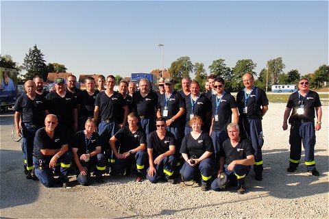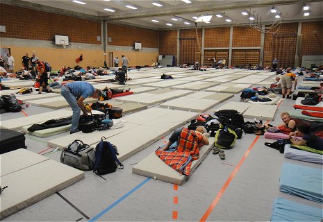 ![]() So viele ehrenamtliche Helfer des THW sind im Einsatz, um täglich 1200 Matratzen und bis zu 24 Tonnen Gepäck für uns zu schleppen |