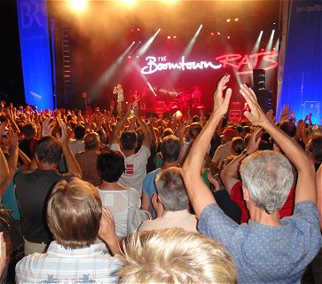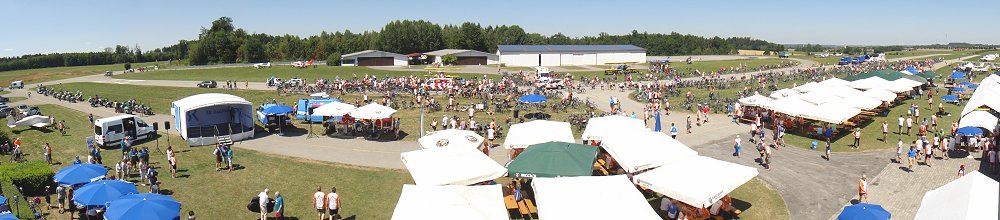 Start und Abend-Veranstaltung mit Bob Geldorf und den Boomtown Rats Am heutigen Sonntag war's endlich so weit: Die BR-Radltour geht los! Da die ersten in der Übernachtungshalle schon vor 6 Uhr (!) unruhig werden, sind wir viel zu früh beim Landfrauen-Frühstück. Auch das Verladen des Gepäcks und der Matratzen muss vor 8 Uhr erledigt sein, also bleibt noch jede Menge Zeit bis zum Start um 9 Uhr. Auch der Start wird noch mal um ein paar Minuten verschoben, weil er live auf BR1 übertragen wird, und das geht natürlich erst nach den Nachrichten. An einem solchen Traumtag wie heute fällt das Warten aber nicht schwer und wir hatten eine fantastische erste Etappe, zuerst am Ammersee entlang, dann eine tolle Mittagseinkehr auf dem Sportflughafen Jesenwang, und schließlich einen euphorischen Empfang im Zielort Friedberg. Dem Wetter entsprechend stürzten wir uns nach dem Radeln erst mal in die kühlen Fluten des nahe gelegenen Badesees, bevor es dann abends wieder auf die bestens besuchte Party-Meile ging, mit dem heutigen Top Act: Bob Geldorf und seine Boomtown Rats. Die Alt-Rocker legten eine Super-Show hin, danach ging's zum Abhotten wieder mit Tom Glas weiter. Der erste komplette Radltour-Tag ist geschafft, Probleme mit der Kondition haben wir keine, und es macht sich das Gefühl breit: Das könnte uns weiterhin gefallen. |