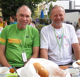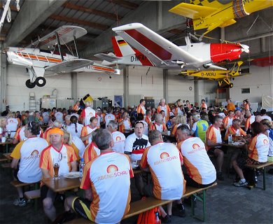 Wenn jemand noch mehr Stellen findet, an denen Flori oder ich im Bild sind: Bitte melden! Im Bericht kommt die Super-Stimmung auf der Radltour recht gut rüber, aber auch einige Individualisten kommen zu Wort und die Logistik im Hintergrund wird gut dargestellt. Besonders gelungen finde ich eine Zeitraffer-Sequenz über die Hallen-Belegung (ab 14:28). Die kleinen oder größeren Frühstücks-Pannen werden natürlich nicht groß rausgestellt. Das (nicht namentlich genannte) Möbelhaus in Friedberg kommt hier jedenfalls zu gut weg ... |