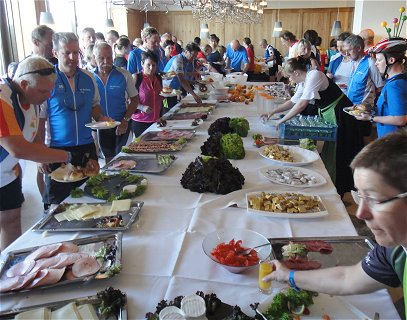 ![]() Im Segmüller-Restaurant gab es zwar ein überwältigendes Speisen-Angebot, allerdings viel zu wenig Sitzplätze und Kaffeetassen, und zeitweise keinen Kaffee: Da drohte die gute Stimmung doch schon mal zu kippen ... |