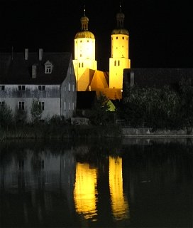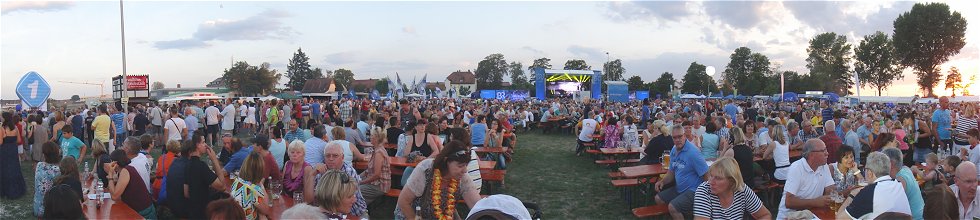 Abend-Veranstaltung mit den Bellamy Brothers Heute ging's nach einem turbulenten Frühstück im Segmüller-Restaurant auf die 2. Etappe nach Wemding, mit Mittags-Stopp in Donauwörth. Die Nachmittags-Etappe hatte es in sich, denn zu den hügeligen Abschnitten kam teils extrem böiger Gegenwind dazu. Wir haben es aber nach Wemding geschafft, und auch die Abendveranstaltung ging ohne Gewitter ab. Bevor wir den Festplatz aufsuchten, zogen wir uns aber erst mal in die Pizzeria La Fontana am Marktplatz zurück. Dort gab's nämlich WLAN, also die erste Gelegenheit zum Homepageln! Die Bellamy Brothers wurden allgemein bejubelt, uns konnten sie allerdings nur teilweise vom Hocker reissen: Die ganzen Country-Songs klingen halt doch alle recht ähnlich, ob sie nun 40 Jahre alt sind (wie die Originalversion von "Ein Bett im Kornfeld") oder brandneu. Es war aber wiederum ein toller Sommerabend in toller Umgebung! |
