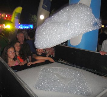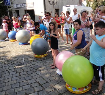 ![]() Besondere Attraktion: Eine Mischung aus Seifenblasen und Luftballons: Hunderte von "Flogos" steigen in den Himmel. |