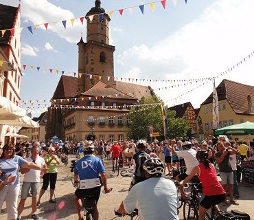 ![]() Der Marienplatz in Weilheim ist voller Radler |