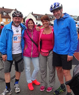 München-Pasing war der erste Halt, unser finaler Ausstieg aus der BR Radltour 2016 fand also schon vor Mittag statt: Eine letzte La-Ola-Welle noch am Bahnsteig und ein vielfaches "Servus, bis nächstes Jahr!" Flori wurde von Bea abgeholt, und ich hatte noch 2 km zu strampeln bis zum Weißwurst- Empfang in der Grandlstraße. Easy going! Trotz 3 Regentagen war auch diese Radltour wieder eine tolle Sache! Der lockere Umgangston, die ständige Gute-Laune-Stimmung, das "wir sind eine große Familie"-Feeling, die perfekte Organisation und nicht zuletzt die starken Live-Konzerte jeden Abend: Das hat schon was Einzigartiges! Wie groß das Suchtpotential der BR Radltour ist, werden wir vermutlich nächstes Jahr merken: Falls wir uns tatsächlich für eine 3. Teilnahme entscheiden sollten, ist Hopfen und Malz verloren! Unsere Mädels wurden heuer ja nur kurz "angefixt". Mal sehen, was draus wird ... |