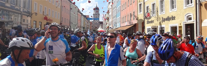 Nach unserer gelungenen Radltour-Premiere im letzten Jahr (hier mein Bericht) hatten sich Flori und ich entschlossen, auch heuer wieder dabei zu sein. Mit entscheidend dafür war die Tatsache, dass es heuer in Vilshofen erstmals einen Pausentag gibt, bzw. einen Tag, an dem man keine Strecke machen MUSS. Nicht, weil wir unbedingt eine Pause bräuchten, sondern, weil diese Besonderheit es erstmals ermöglichte, dass auch Radler, die NICHT zur Radltour gehören, ein paar km mitstrampeln können. Das gab's bisher noch nie! Und so hatten wir mit unseren Mädels abgestimmt, dass sie in Vilshofen zu uns stoßen.