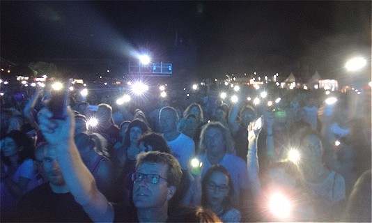 Top-Act NENA: Sicherlich ein beeindruckendes Konzert mit vielen der Gassenhauer, die man von ihr kennt. Aber (jedenfalls für mich) auch ein bisschen nervig: Zu oft "Ihr Lieben!" gehört, zu gekünstelt die Aussage, der Abend könne nur was werden, wenn wir, das Publikum, nicht nur konsumieren, sondern uns beteiligen. Auf die Meditations-Minute ("nur, wenn ihr es auch wollt") hätte ich komplett verzichten können. Trotzdem ein sehr schöner Abend mit Nena und ihrer vielköpfigen Begleitung. Das Wort "BR Radltour" hatte sie aber wohl nicht im Vertrag. |