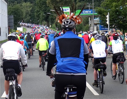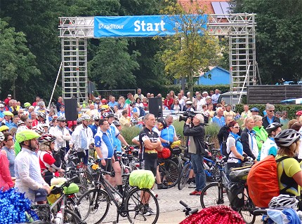 Wenn ich die BR Radltour mal kritisch hinterfrage, müsste ich wohl eine Überalterung konstatieren (der Alters-Durchschnitt liegt vermutlich eher bei 60 als bei 50). Und da passen die abendlichen Musik-Events eigentlich gar nicht mehr dazu, weil die sich an ein deutlich jüngeres Publikum wenden (So war's jedenfalls heuer). Es ist natürlich sehr schwierig, hier Änderungen einzuführen. Man will ja keinen langjährigen Teilnehmer vor den Kopf stoßen! Dennoch: Ein Verbot von Pedelecs würde wieder gleiche Bedingungen für alle Radler schaffen, und eine etwas ambitioniertere Etappen-Planung (z.B. 100 km pro Tag) könnte den sportlichen Aspekt wieder in den Vordergrund stellen. |