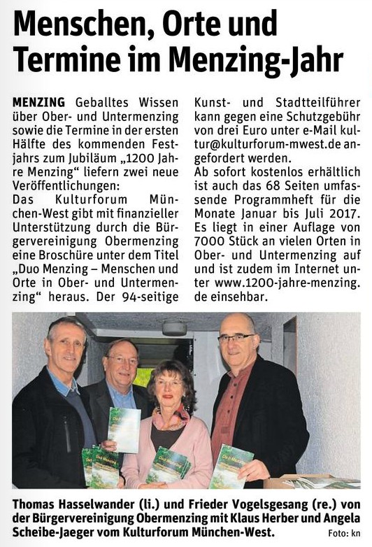 Unter dem Titel "Menschen, Orte und Termine im Menzing-Jahr"