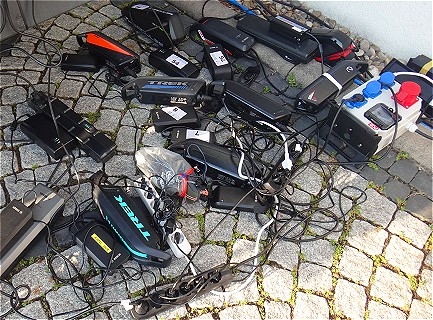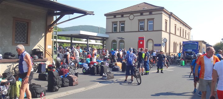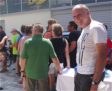 Für uns war die Sache nach ca. 30 Minuten erledigt, wir parkten unsere Räder strategisch, und hatten schon einen guten Eindruck vom Startgelände bekommen. Da kann morgen nicht mehr viel schief gehen! Dann mussten wir zurück nach München, denn der Nachmittag und Abend war der 60er-Fete unseres Bruders bzw. Freundes Michi in Ulm vorbehalten. Meine Tasche für die Radltour hab' ich erst in der Nacht auf Sonntag gepackt ... |
