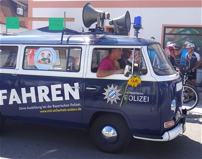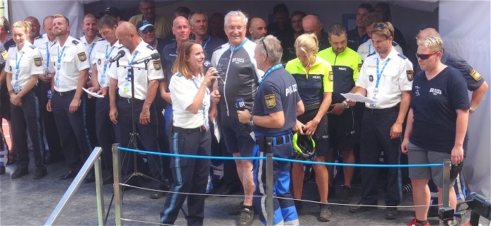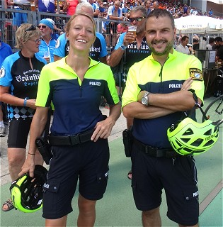traditionelle Gesangs- Darbietung der Polizei. Auch 2 Radl-Streifen im