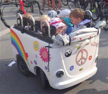sehr viel Mühe gegeben, die Radler herzlich und mit Seifenblasen zu empfangen.