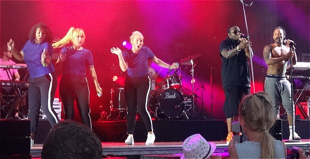 Das Wetter war hochsommerlich heiß, Gewitter sind uns aber erspart geblieben, und ein kleiner Vormittags-Schauer am Donnerstag wurde eher als willkommene Abkühlung gewertet. Für die Abendveranstaltungen waren es perfekte Voraussetzungen! Zu keiner Zeit musste man überlegen: Zieh' ich lieber eine lange Hose an? Nehm' ich eine Jacke mit? Oder gar einen Schirm? Nix davon! Einfach in T-Shirt und kurzer Hose reinstarten in die laue Sommernacht. Unsere private Hitliste der Musiker steht auch schon, nachdem wir uns gestern zu Platz 3 und 4 verständigt hatten: 1. Anastacia |