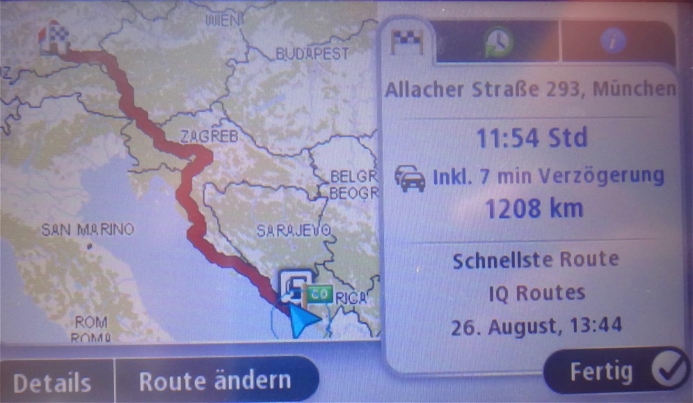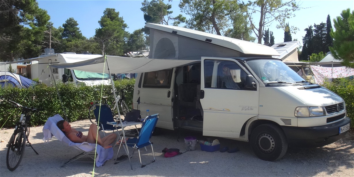 --- Update 27.08.: Heute haben wir uns ohne Frühstück auf den Weg gemacht, sind auf der fast leeren A1 gut voran gekommen und verbringen unsere vermutlich letzte Camping-Nacht nördlich von Zadar bei Starigrad (ca. 800 km "from home"). Hier wartet morgen noch der Paklenica Nationalpark auf uns, ein Paradies für Kletterer und Winnetou-Fans. Sind wir beides nicht, aber wir schauen mal rein, es muss landschaftlich fantastisch sein. Dann geht's auf der Küstenstraße weiter nach Rijeka, und da wir den Wochenend-Rückreiseverkehr möglichst vermeiden wollen, fahren wir entweder nachts oder denken uns Alternativen zu den Standard-Strecken aus. Mein Favorit wäre die Route über den Plöckenpass und die Felbertauern-Straße, aber da zieht Schnecki (noch) nicht mit.