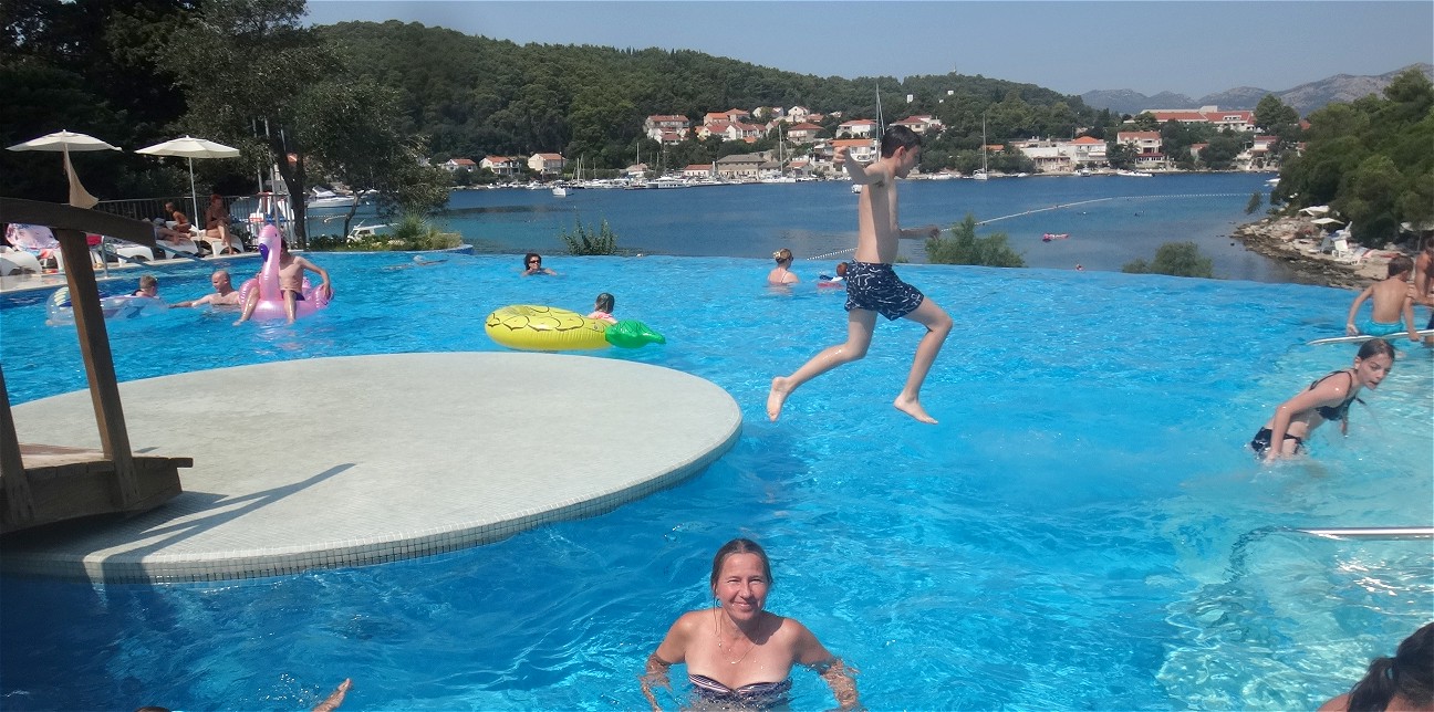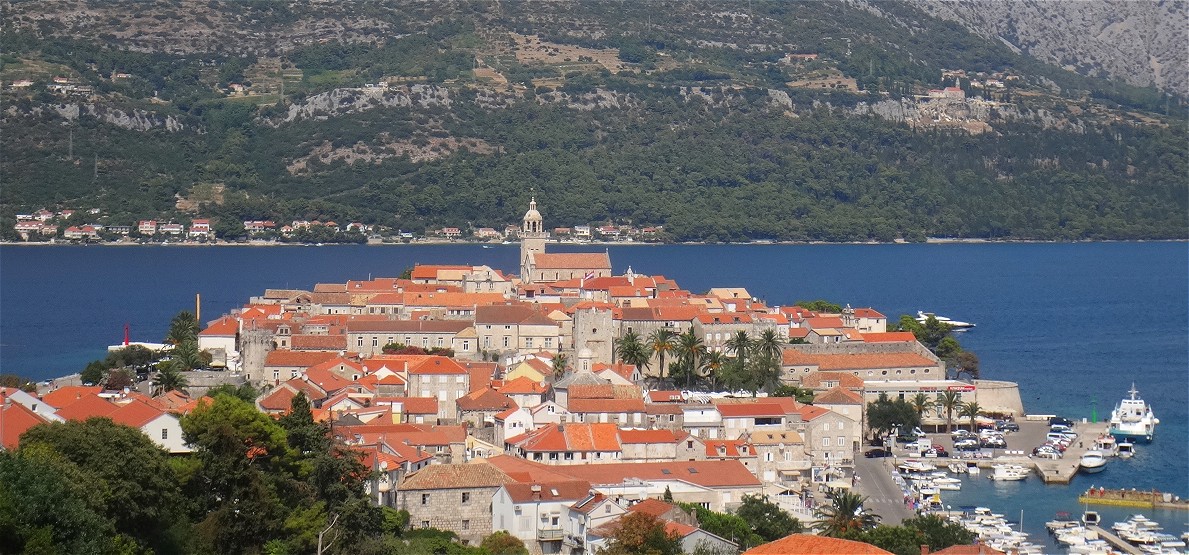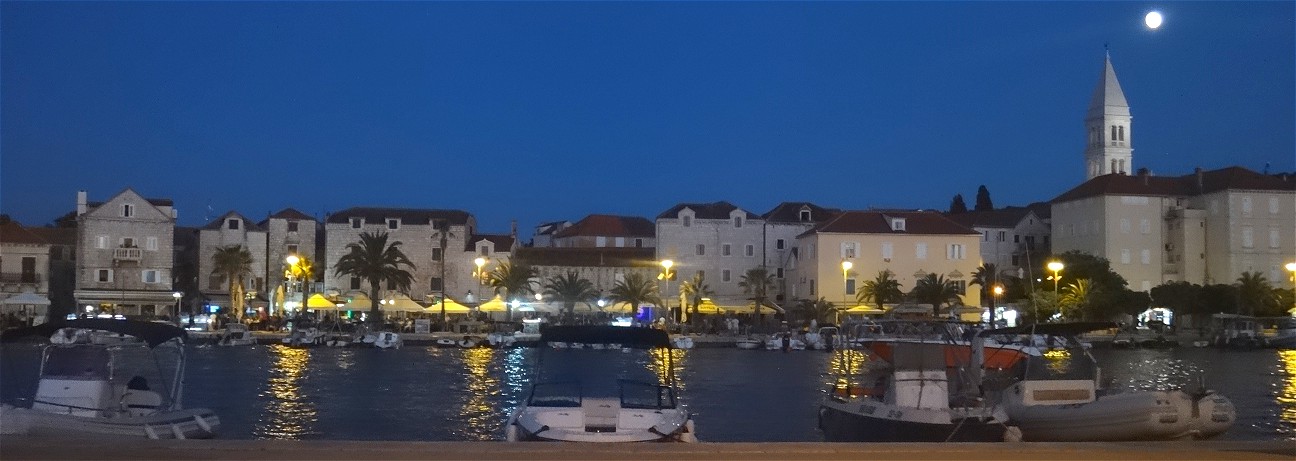 . --- Update 23.08.: Nach einer Übernachtung im malerisch gelegenen ehemaligen Piratennest Omiš war gestern wieder Inselhüpfen angesagt: Erst vom Festland rüber auf die Halbinsel Pelješac, und dann weiter nach Korčula. Korčula Stadt ist ein historisches Oval auf einer kleinen Halbinsel: Innen drin alte Mauern und Touristen-Restaurants, außen rum liegen fetteste Yachten. Wir konnten auf dem Campingplatz die Annehmlichkeiten der zugehörigen Hotelanlage nutzen, dann ging's auf der Inselstraße ans andere Ende der Insel nach Vela Luka, aber nicht ohne einen Zwischenstopp an einer tief unterhalb der Straße gelegenen Badebucht bei Pupnatska Luka. Das war schon mal recht urig. Jetzt sind wir auf dem Kamp Mindel im ziemlichen Nirgendwo, aber es gibt rundherum einsame Buchten in Fußgänger- bzw. Radl-Distanz. Und die Fischplatte im von außen gar nicht recht erkennbaren einzigen Restaurant im Umkreis von 5 km war sensationell (leider gibt's kein Foto davon). Morgen geht's zurück auf die Rotwein-Halbinsel Pelješac und am Mittwoch steht dann Dubrovnik auf dem Plan. Dann noch kurz an die Südspitze Kroatiens runter, danach ist Umdrehen angesagt! Hier wieder ein paar Fotos: