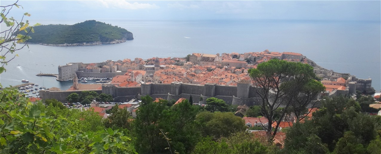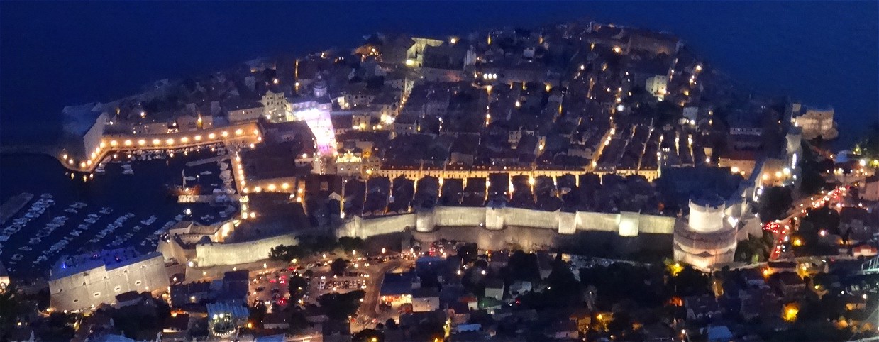 Normalerweise fotografieren wir unser Essen nicht, aber hier machen wir mal eine Ausnahme. Die Fischplatte für 2 Personen war wohl der kulinarische Abschluss unseres Kroatien-Urlaubs 2021. --- Update 26.08.: Gestern erreichten wir nach unserer letzten Fährüberfahrt (der insgesamt siebten) von Korčula nach Orebic unseren Zielort Dubrovnik. Leer war's dort zwar nicht, aber es ging recht gesittet zu und wir hatten keinerlei Stress. Dies wurde auch begünstigt durch den stadtnahen Campingplatz, der ruhig gelegen ist, jede Menge Komfort bietet und bei Weitem nicht voll ist. Abends fuhren wir noch mit der Seilbahn auf den Aussichtsberg Src (412m) direkt über der Altstadt. Mehr Dubrovnik an einem halben Tag geht nicht! Heute entschlossen wir uns, noch eine zweite Nacht auf dem Campingplatz in Dubrovnik zu bleiben. Von hier machten wir einen 55 km Abstecher zum äußersten südlichen Punkt Kroatiens, der Punta Oštro. Hier ist absolut nichts los, es gibt eine Festung, die wohl seit Jahren der Renovierung harrt, man sieht in den einzigen Fjord Südeuropas rein und im Hintergrund die montegrinische Stadt Herzeg Novi. Hier inszenierten wir unsere "Wende" auch fotografisch, bei ca. 1680 gefahrenen km, und exakt 1208 km zurück in die Allacher Str. Auf dem Rückweg gab's noch einen Abstecher in die malerisch gelegene Stadt Cavtat. Und abends geht's ein zweites Mal in die Altstadt.