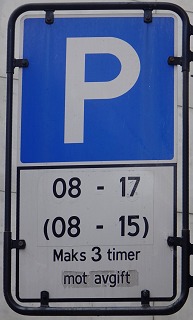 Was bedeutet dieses Parkzeichen genau? Das "Zauberwort" ist "mot avgift", also mit Gebühr. Dann kann man sich's leicht zusammenreimen, die Parkgebühr fällt an von 8 bis 17 Uhr (sonntags bis 15 Uhr) und man darf maximal 3 Stunden stehen bleiben. Aber wie zahlt man? Parkscheine auf Papier gibt es nicht. Entweder gibt es einen Kasten, da tippt man sein Kennzeichen und die Kreditkarte ein, oder man registriert sich bei autopay oder ähnlichen Firmen. Die Rechnung kommt dann später. Schau mer mal ... |