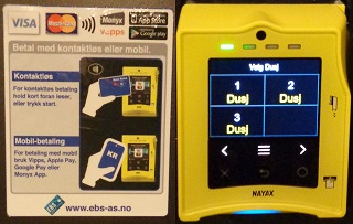 Was kann (bzw. muss) man hier mit Kreditkarte bezahlen? Das warme Wasser für die Dusche auf dem Campingplatz. Man kann's auch übertreiben mit den Kreditkarten! Oft ist die warme Dusche im Preis inbegriffen, ansonsten kostet sie 10 Kronen (1 €) in Form von Münzen oder Jetons. Das mit der Kreditkarte haben wir nur einmal erlebt. Und wenn schon bargeldlos, dann kann man ja auch gleich mal 25 Kronen nehmen. Ohne uns, heute kalt geduscht! |
